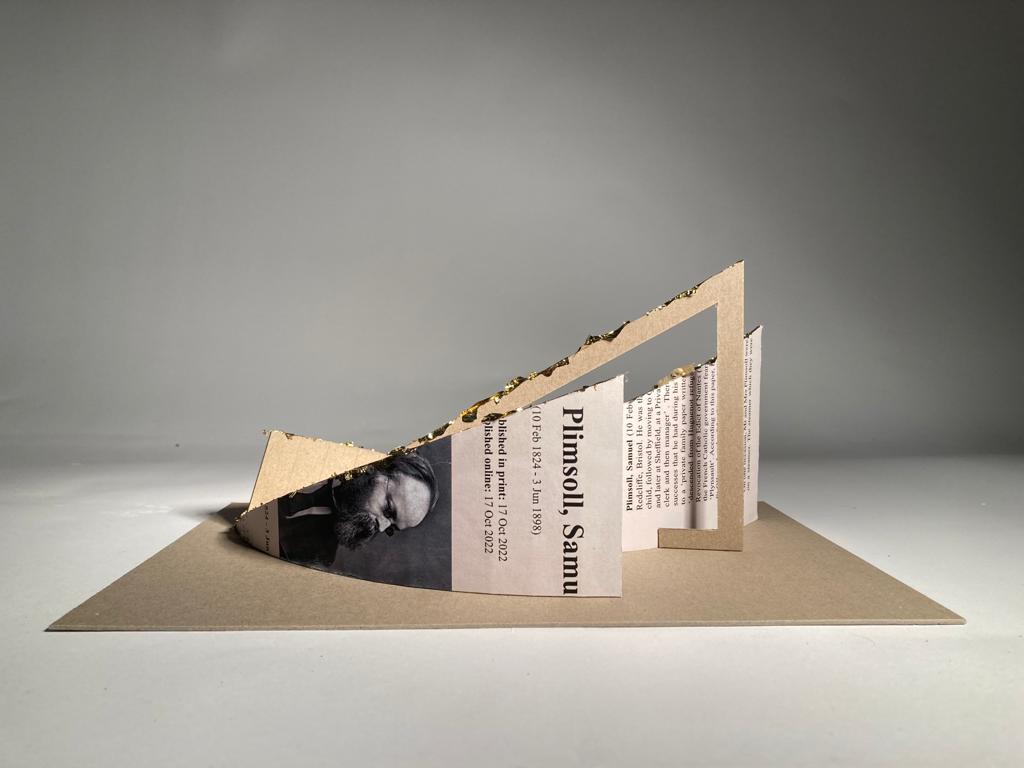 As primer work for my Year 3 project, we had to investigate an ‘important’ figure who is memorialised on the site in Redcliffe, Bristol. This exercise focused on memory, who gets remembered and who decides this. After thorough analysis of his life, Nia Ferris (fellow student) decided to represent what we thought were important parts of Samuel Plimsoll’s life through different ‘lines’. These included his merchant career (the declining line), his family history (the line with a vacant middle as not much information is known), his positive public opinion and also his controversy with politicians (the other two inclining lines). We couldn’t find any bad information on Plimsoll so decided not to suggest that there might be any because this could be misinformation and a form of mistruth. We decided to focus on the good things he did in his life and memorialise this in a model, we have shown this through the gold dusting.