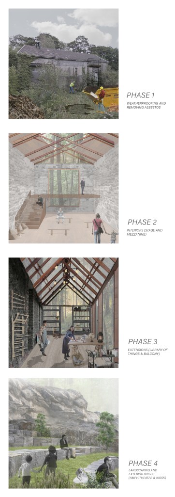 University linked conservation project to enrich the community of Ynysybwl. Under the supervision of Ed Green (WSA), a small group of students and I put across a vision for the initial design and won the student voted competition. I then took part in the internship programme over two weeks where I helped produce a phased scheme for the rejuvenation of the area, this included direct consultation events with the community. I focused on the restoration and rejuvenation of an abandoned Railway Engine House into a usable multi-use hall for the community with Ellie Yip.
