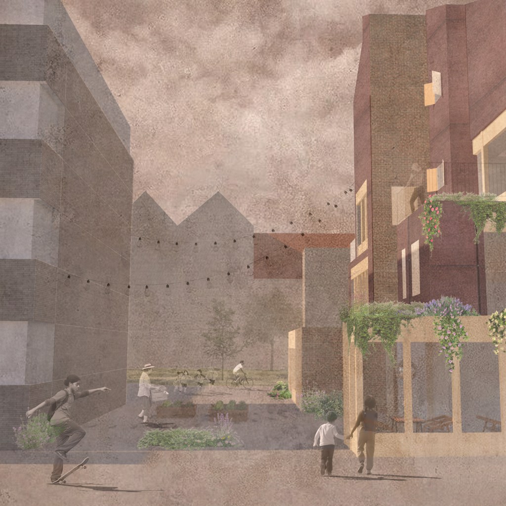 Aim to design a space which responds to issues of identity, security, lack of ownership, social housing deficit in quality and quantity. The space will incorporate aspects of play, display a lack of control and boundaries and will celebrate neighbourhood relations, linking back to the common concepts of my Primer project.